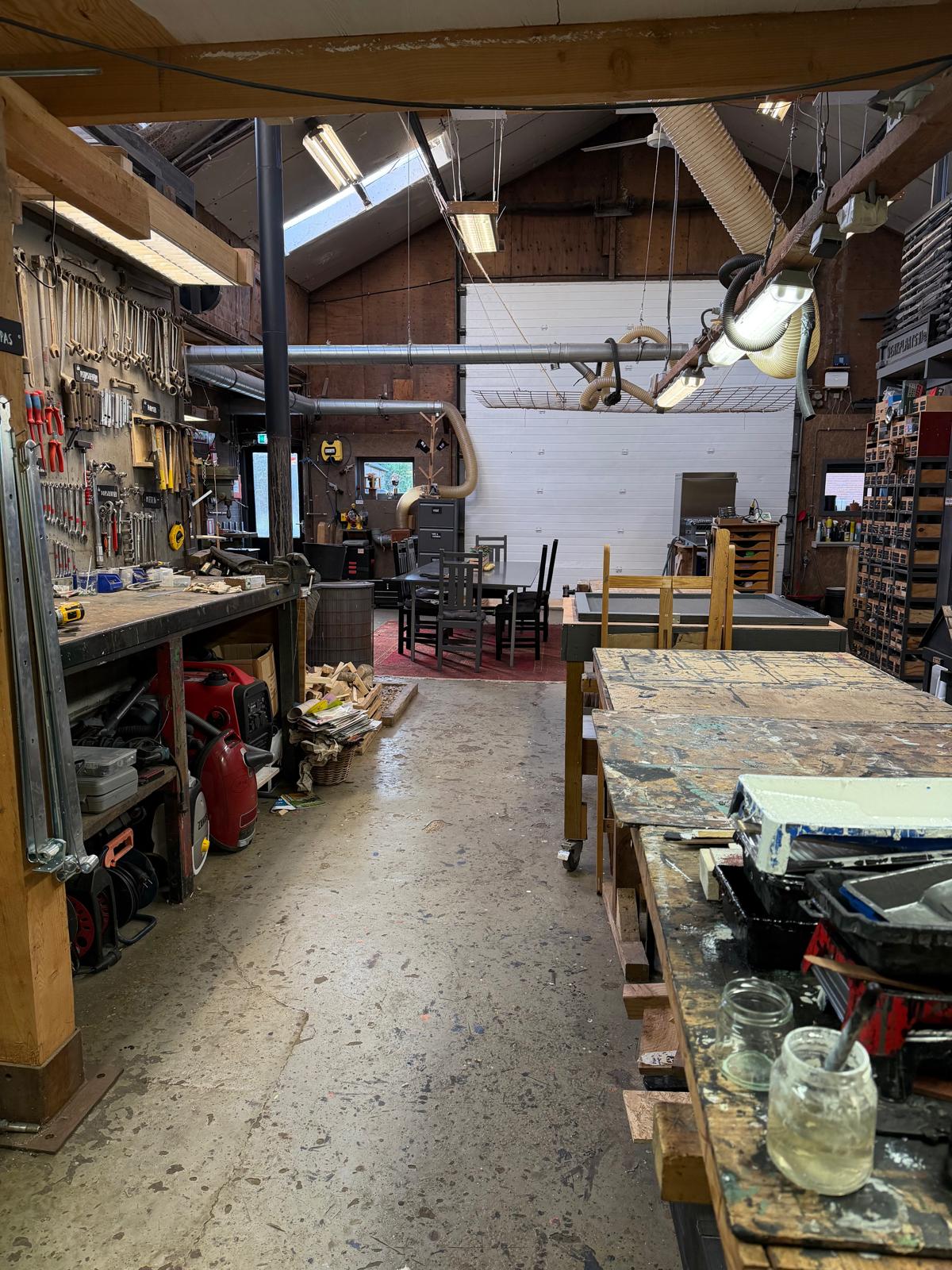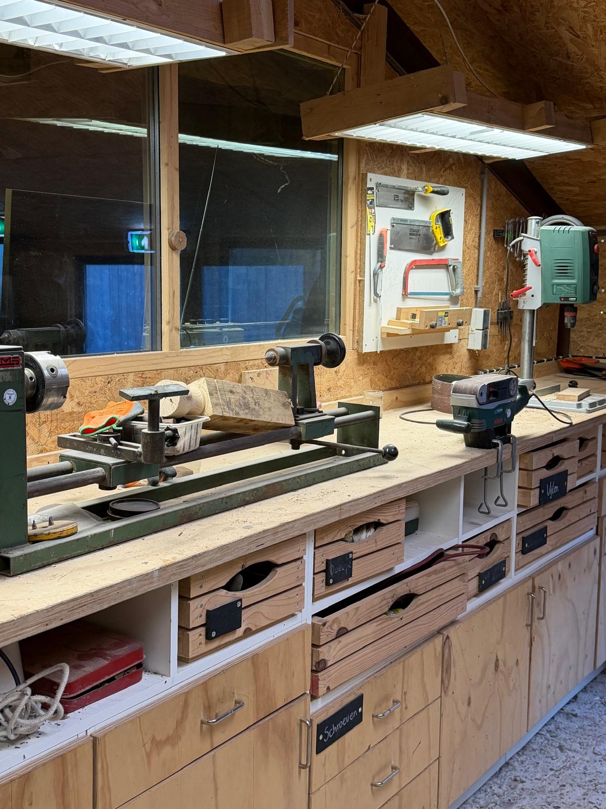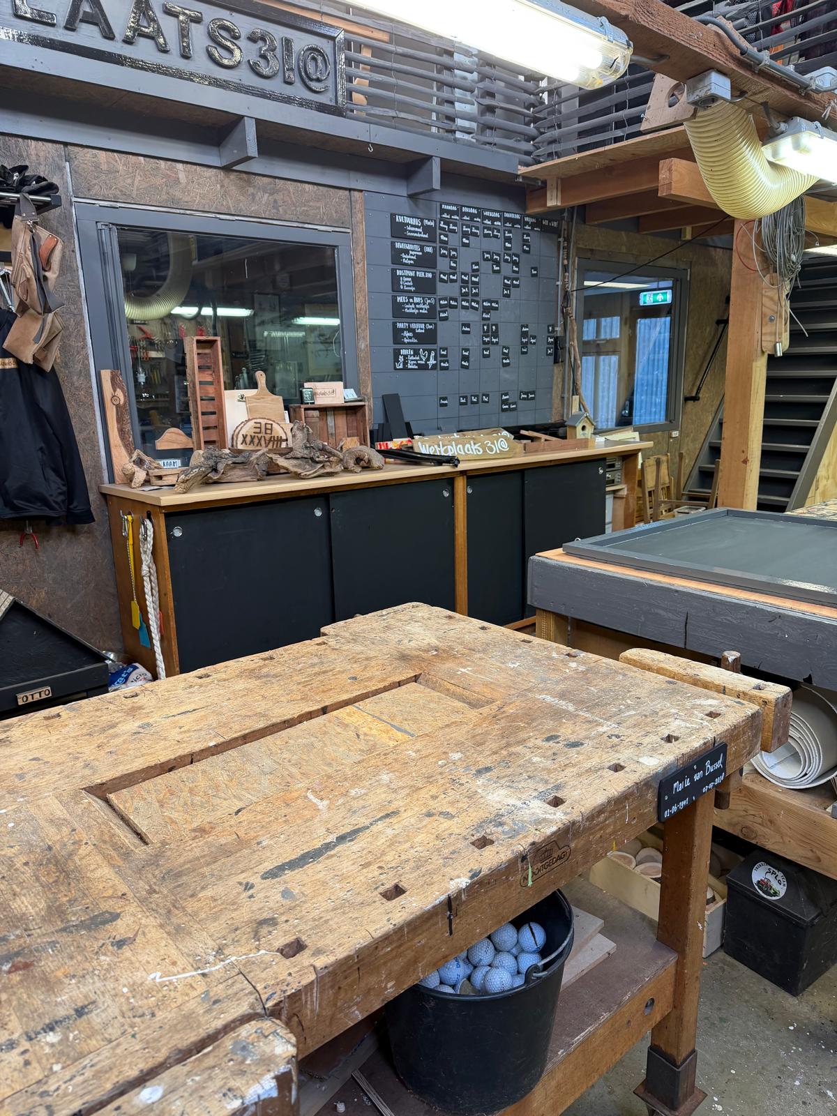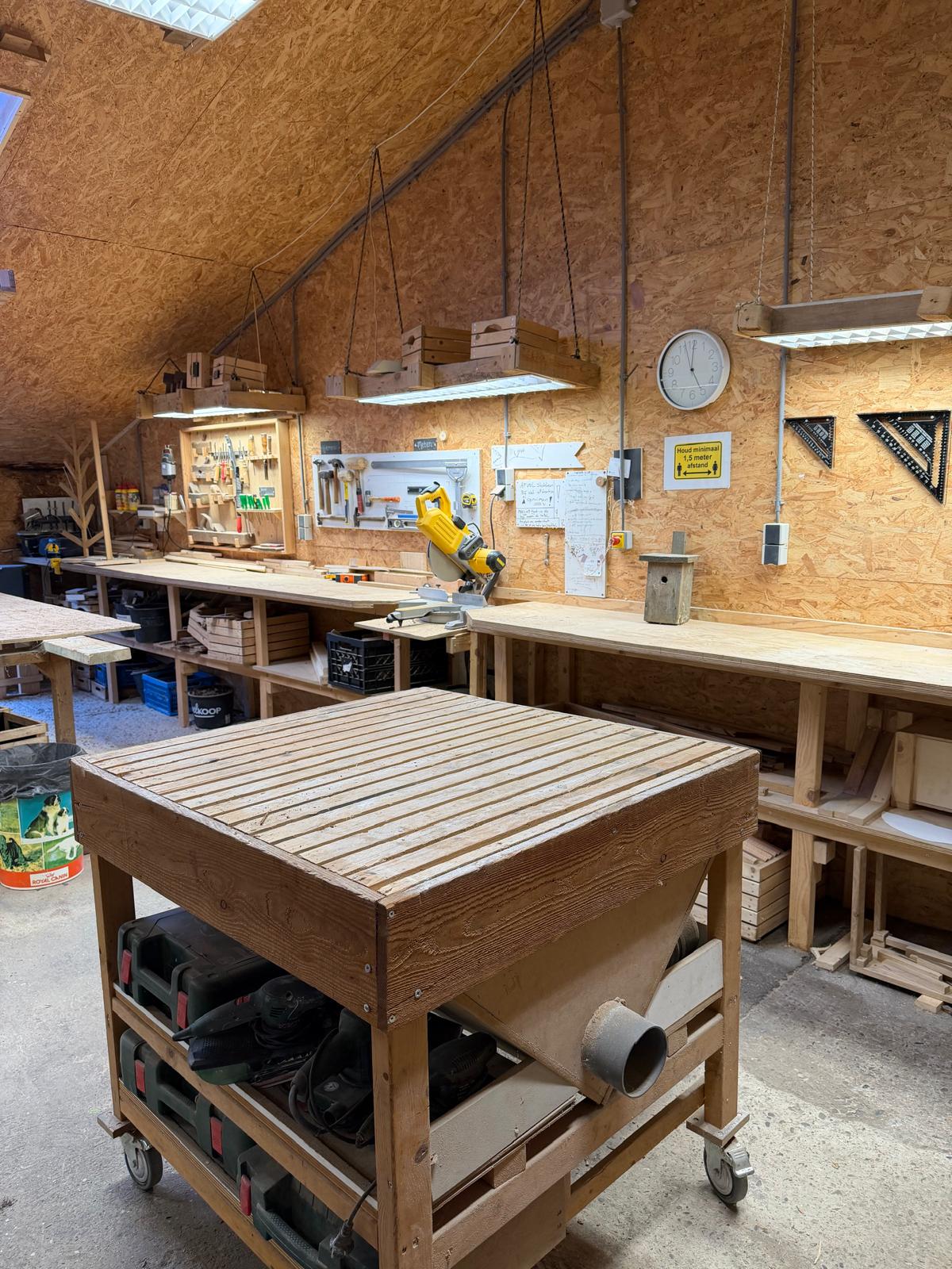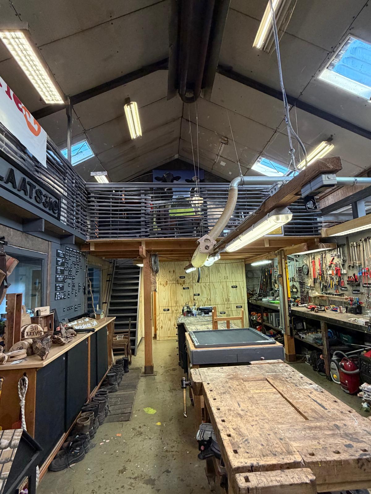 In de schuren en werkplaats hebben we de afgelopen jaren verschillende werkplekken gecreëerd die een gevarieerd aanbod mogelijk maken. Zo ontstonden er o.a. werkplekken voor hout, techniek en metaal, een Atelier, een keuken en een Rustpunt.